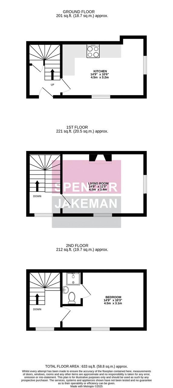 Please note that our room sizes are quoted in metres to the nearest one tenth of a metre on a wall to wall basis. The imperial equivalent (included in brackets) is only intended as an approximate guide. We have not tested the services, equipment or appliances in this property; also, please note that any fixture, fittings or apparatus not specifically referred to in these details, is not included in the sale, even if they appear in any internal photographs. You are advised to commission appropriate investigations and ensure your solicitor verifies what is included in the sale, before entering a legal commitment to purchase. While we try to make our sales details accurate and reliable,Spencer & Jakeman does not give, nor does any Officer or employee have authority to give, any warranty as to the accuracy of any statement, written, verbal or visual. You should not rely on any information contained in these details when deciding whether to view or purchase.